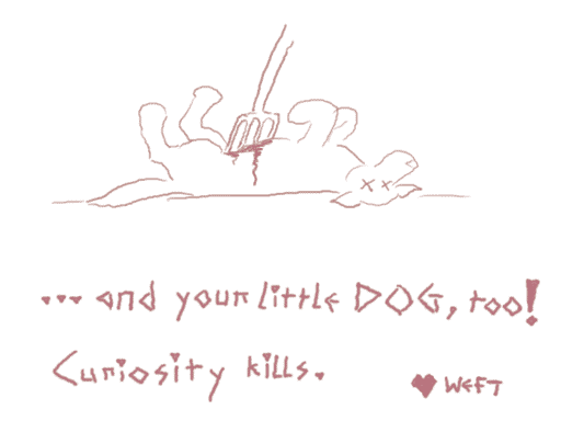Love note [7.9kb] (This is a reference to the book The Curious Incident of the Dog in the Night-Time, so not just Weft entertaining violent thoughts.)